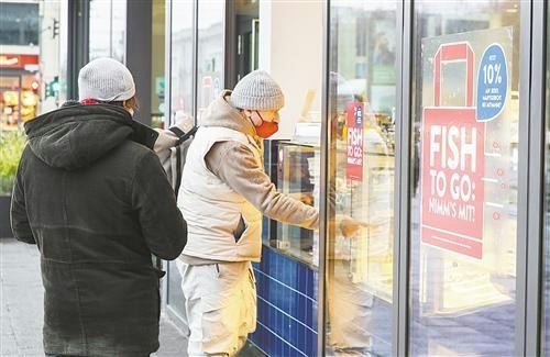 图为11月26日,在德国首都柏林,人们在一家餐馆购买外带食物。新华社记者 单宇琦摄