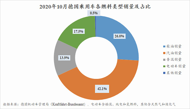 根据数据显示,10月德国乘用车市场共售出274,303辆,同比下跌3.6%。但是,纯电动汽车的销量同比暴增365%至23,158辆;插电式混合动力汽车的销量同比增长256%至24,859辆;汽油车销量下滑30%,占据42.1%的市场份额;柴油车销量下滑19%,占据26%的市场份额。